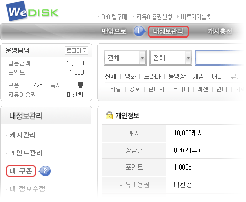 º¸À¯ÇÏ°í °è½Å ÄíÆùÀÇ °³¼ö´Â ·Î±×ÀΠâÀÇ 'ÄíÆù'À̳ª '³»Á¤º¸°ü¸® > ³»ÄíÆù'ÀÇ »ó´Ü¿¡¼