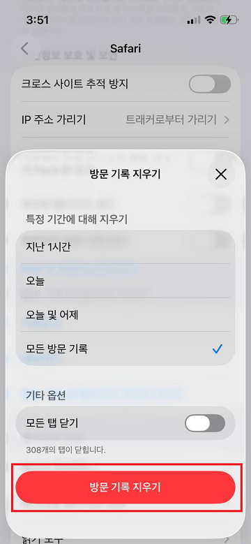 4. [¹æ¹® ±â·Ï Áö¿ì±â] ¼±Åà ½Ã Safari(»çÆÄ¸®) ij½Ã°¡ »èÁ¦µË´Ï´Ù.