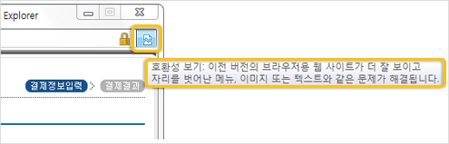 - 결제 과정 중 창이 하얗게 되고 멈추는 경우 [호환성 보기] 기능도 확인해 주세요.