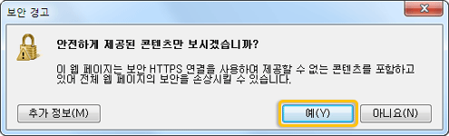 - 결제 과정 중에 보안 경고가 나타나면 [예]를 누릅니다.
